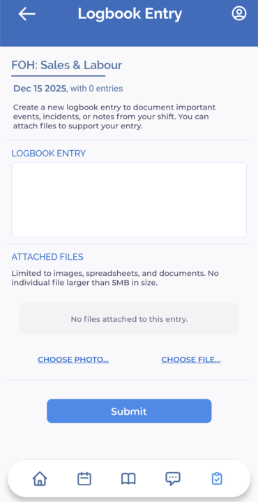 - Secure Access: The uploaded files are securely attached to the specific log entry for easy reference and management review.