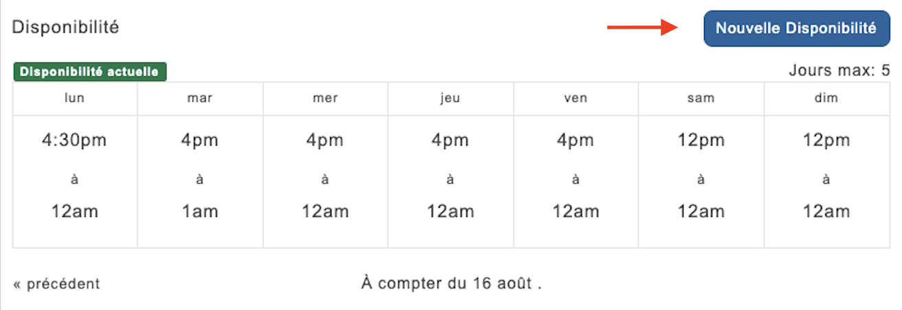- Assurez-vous de vérifier la date d'entrée en vigueur de la nouvelle disponibilité, car elle remplacera toute disponibilité antérieurement renseignée dans le profil.